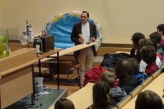 Pracownicy Zakładu Optyki Stosowanej: dr hab. inż. Tomasz Więcek, prof. PRz., dr Jan Mamczur oraz dr Leszek Pyziak przedstawiali doświadczenia na temat zjawisk optycznych oraz wybranych zagadnień z mechaniki klasycznej.